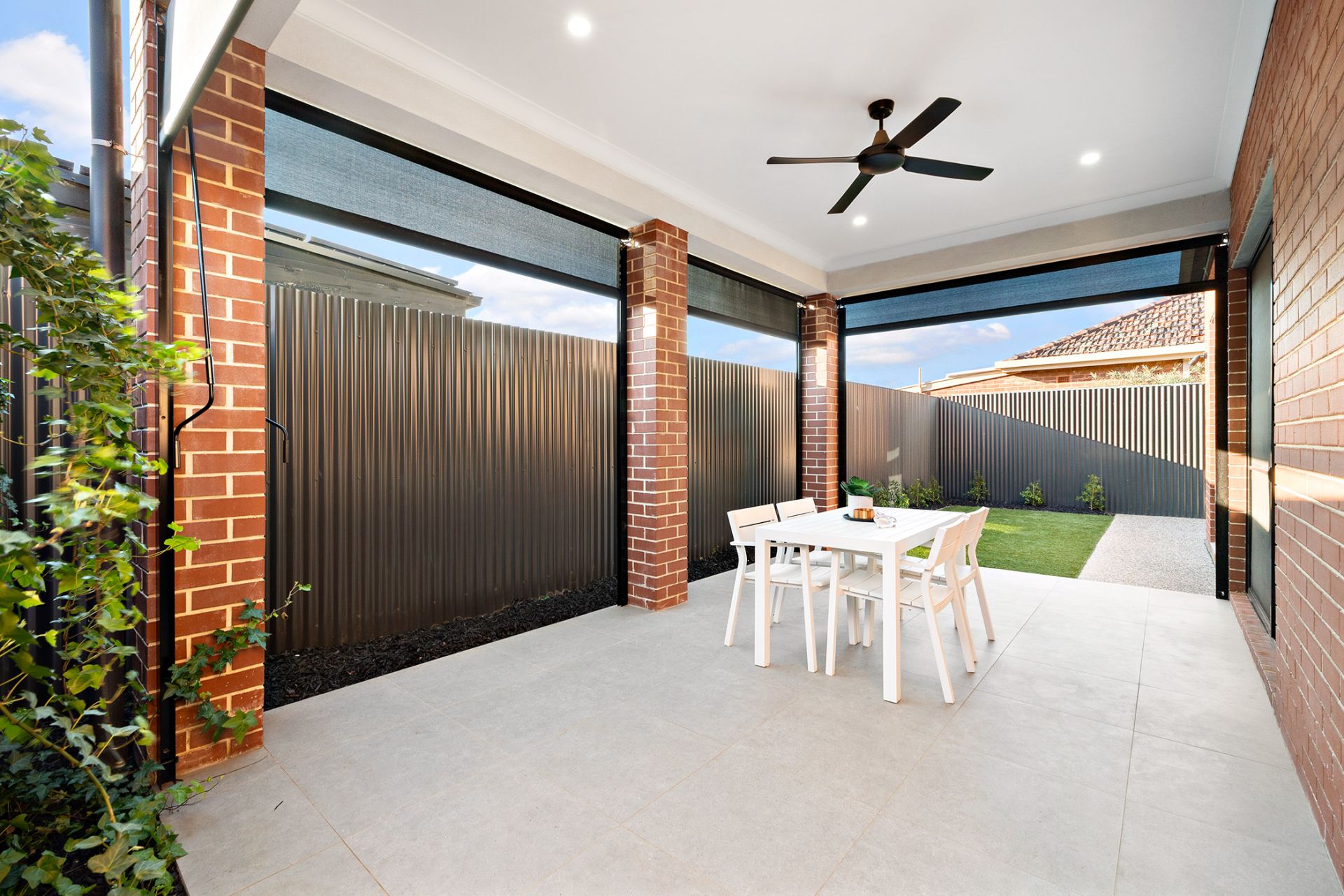 • Alfresco entertaining area with café blinds, extending seamlessly into the garden
