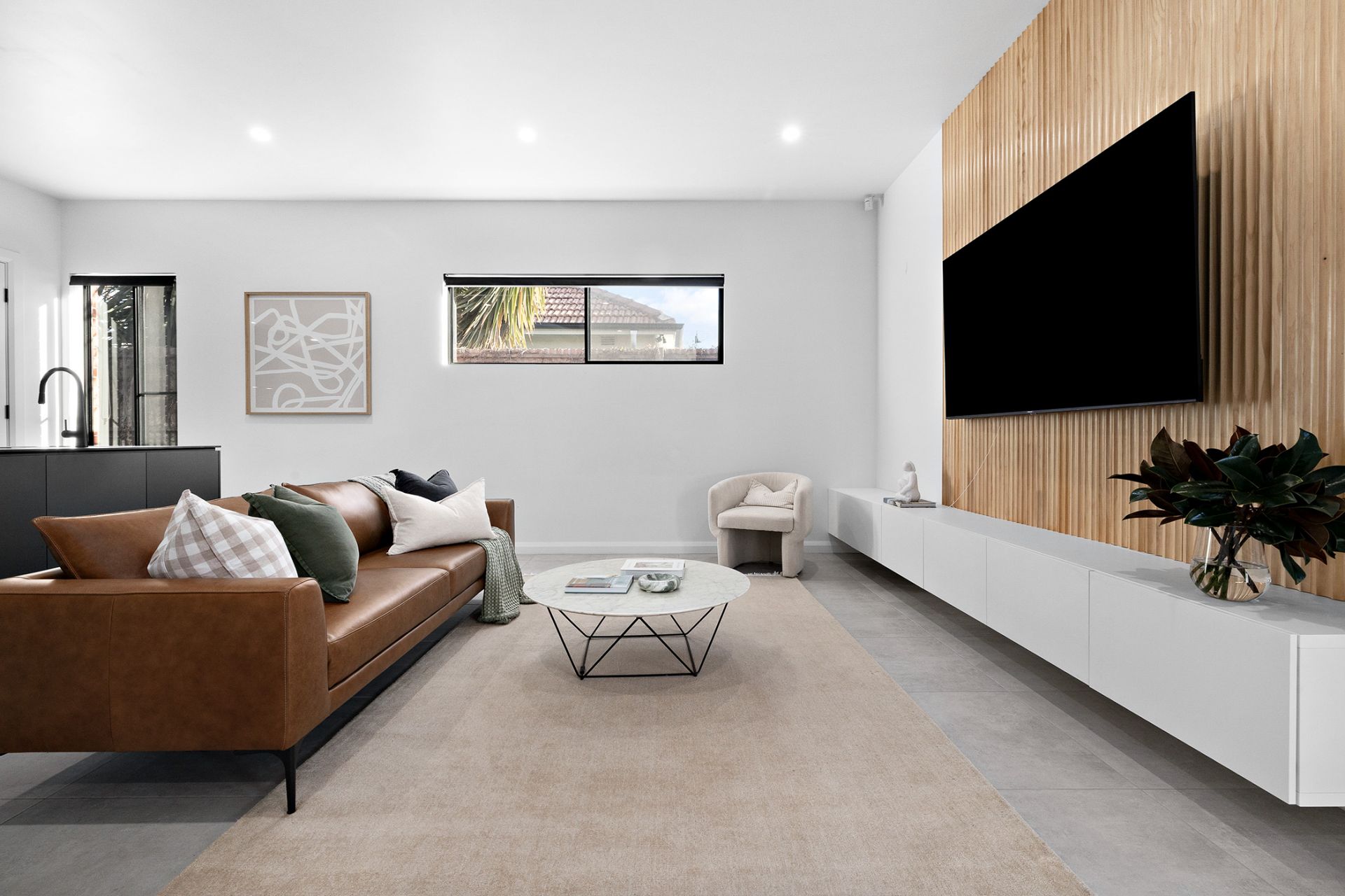 A home office sits on a lower level that exhales into an open-plan dream, giving you the option of a fourth bedroom at the drop of hat.