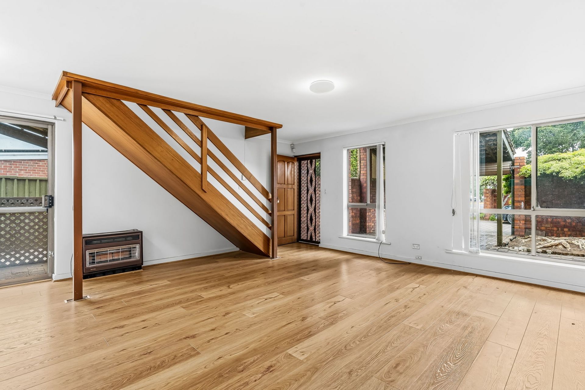 Part of a quiet group of just four, this solid brick two-storey home gets straight to the point with a practical ground floor layout where light filled living and dining zones meet warm timber floors and a timber staircase that nods gently to its era.
