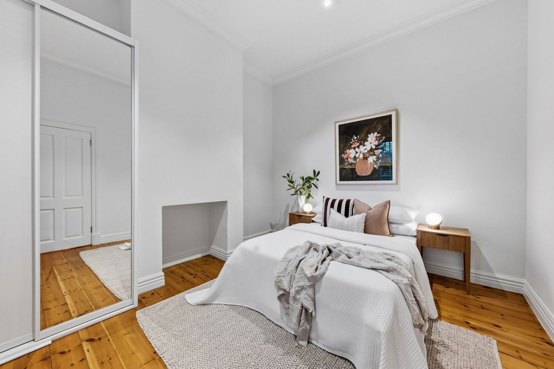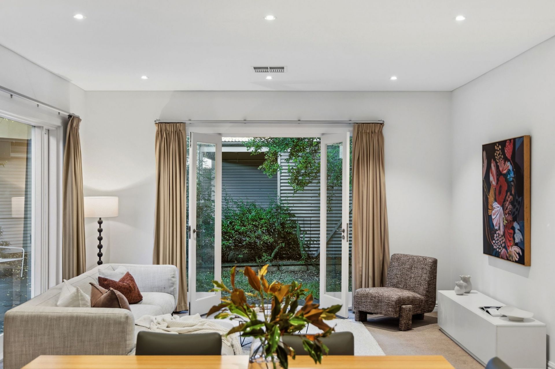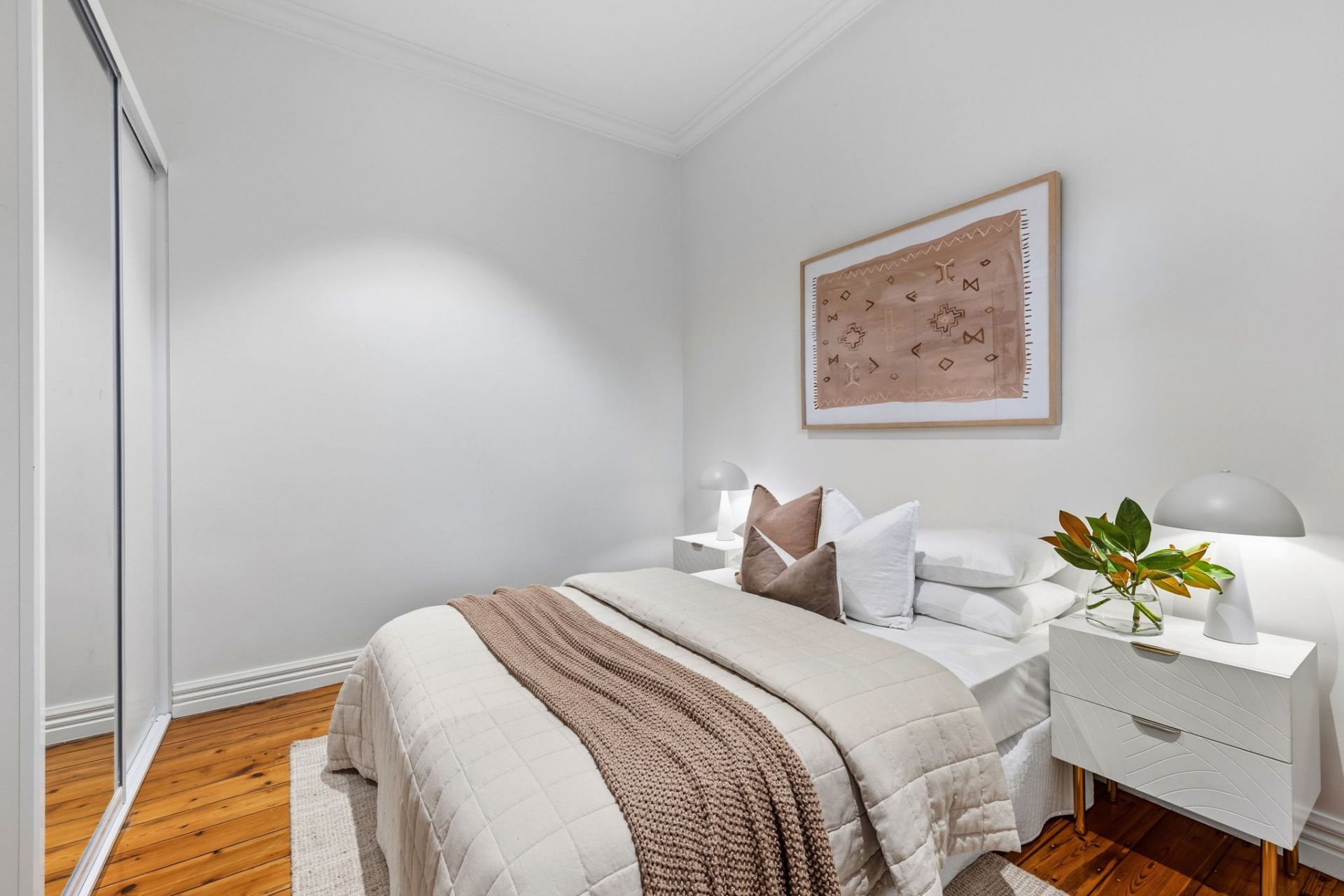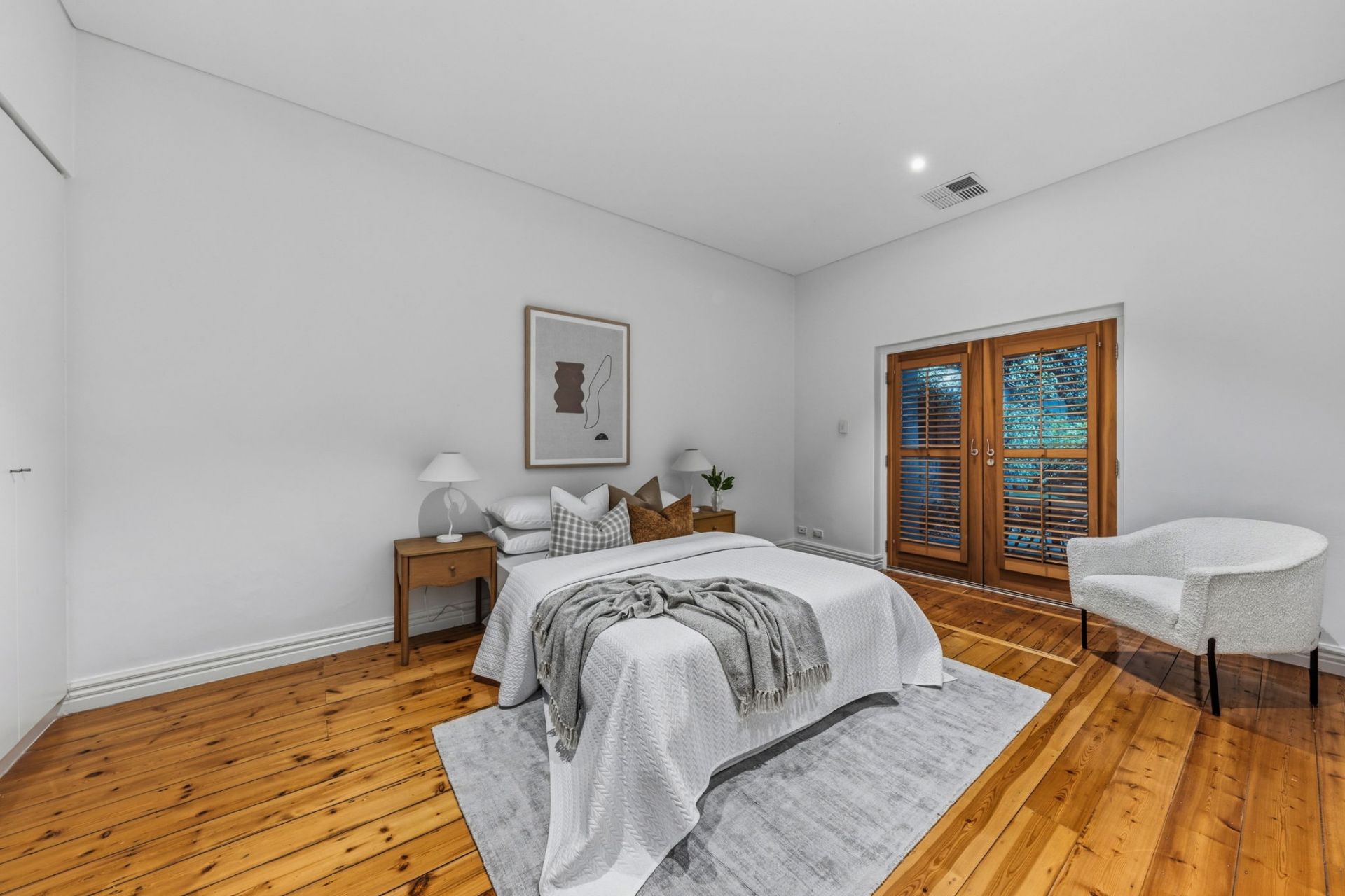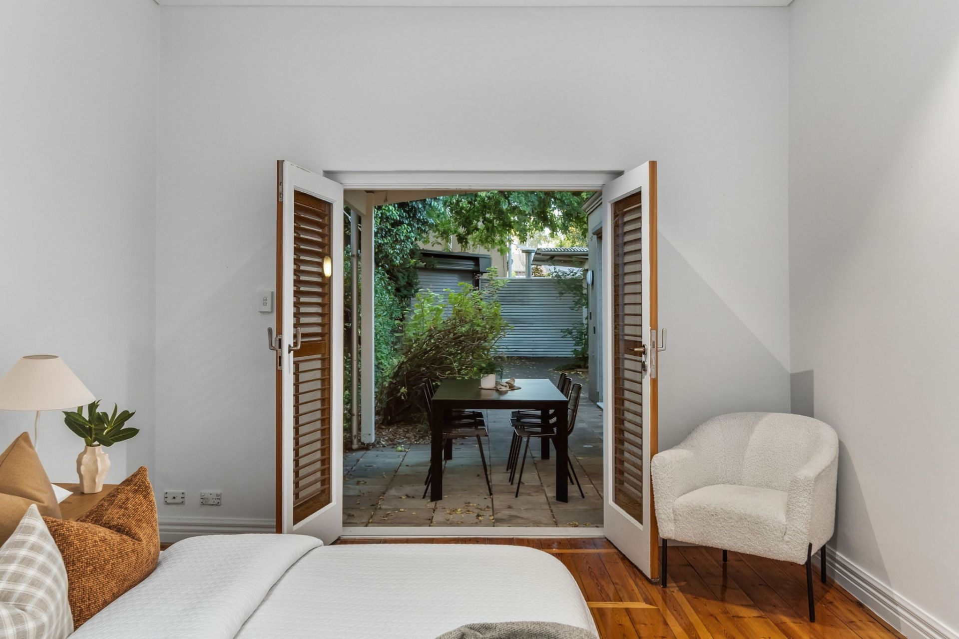 High ceilings and polished timber floors run through the original rooms, giving the front bedrooms proper scale and presence. One opens through French doors to a private courtyard, adding flexibility for guests, work or quiet morning coffee.