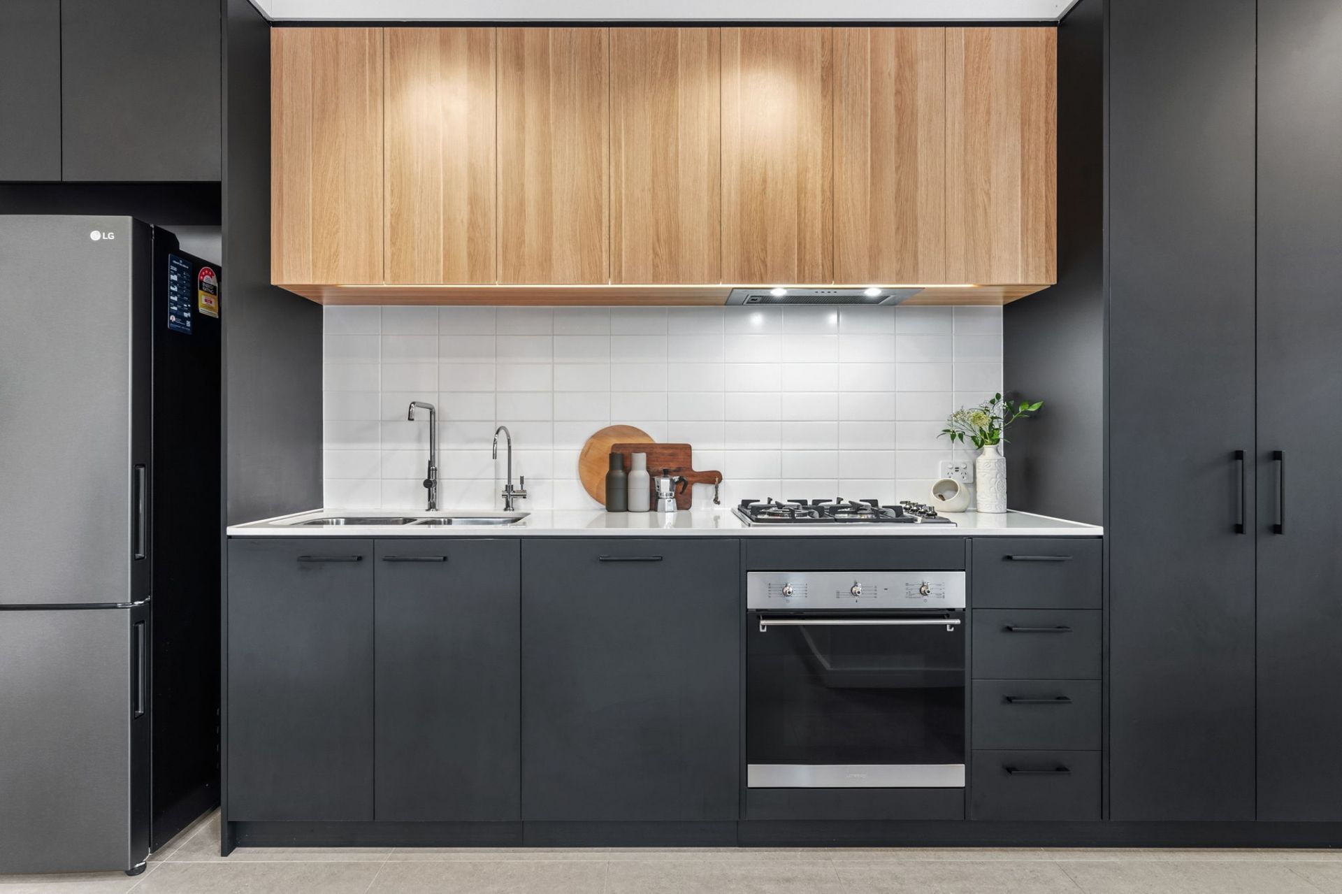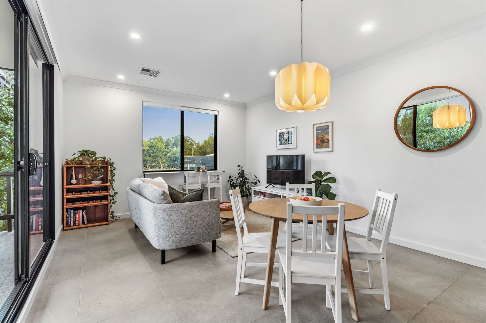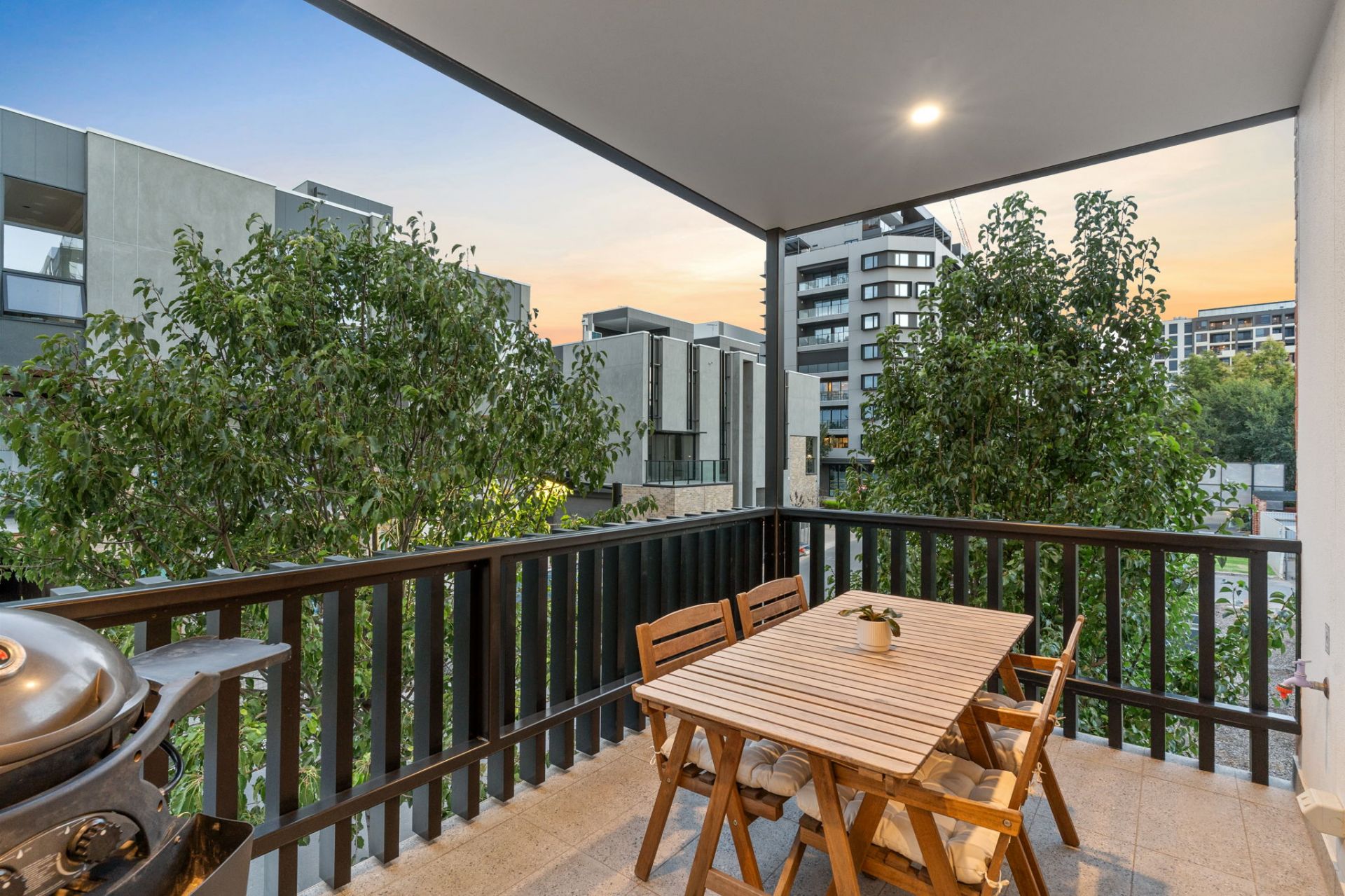 Upstairs, the first floor opens into a light filled kitchen, living and dining zone that spills through sliding glass doors to a north-east facing balcony with parkland outlooks over Plant 4.