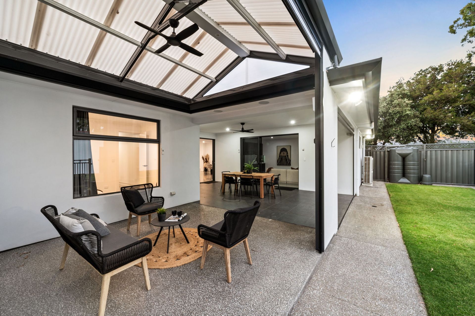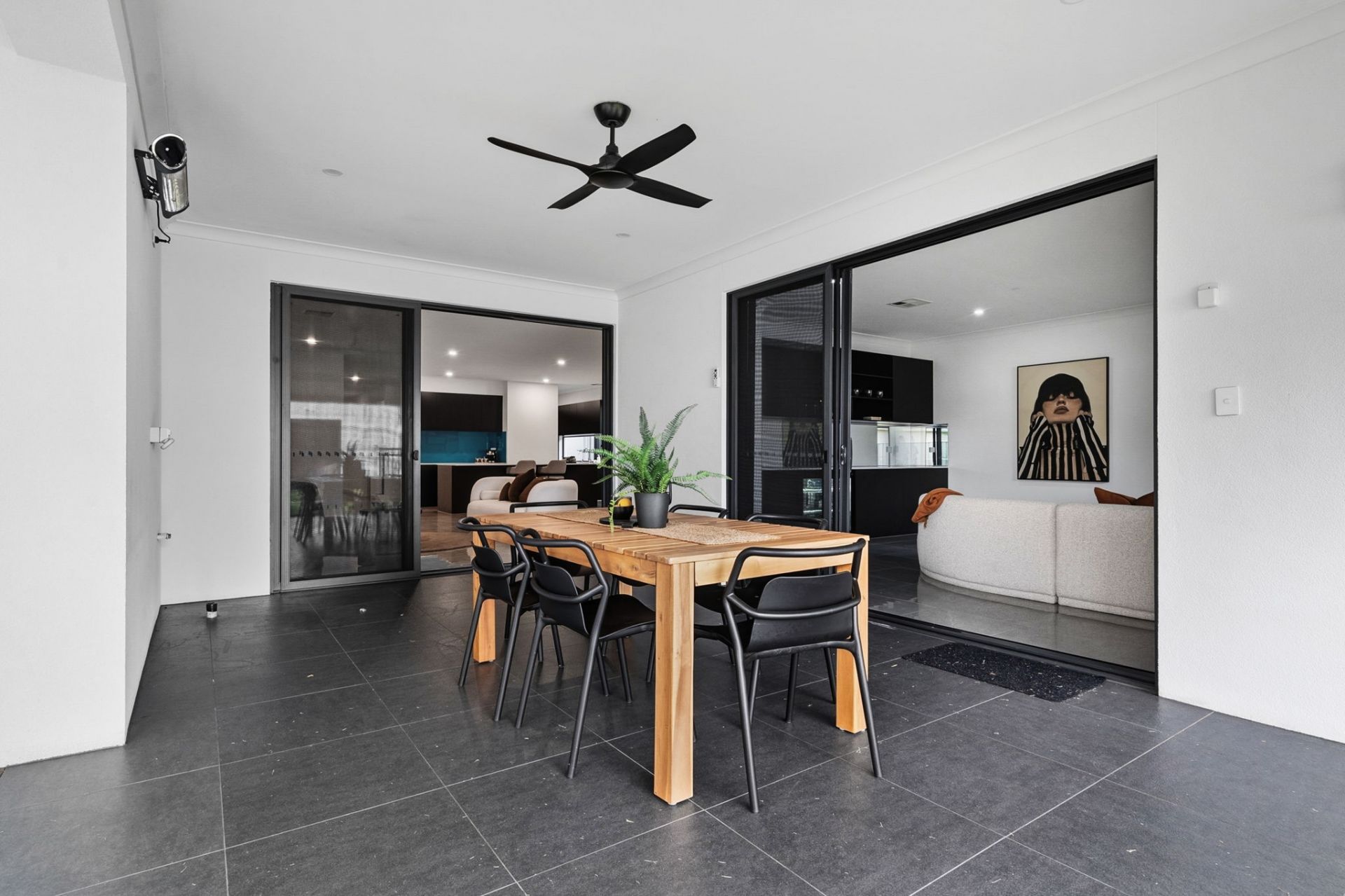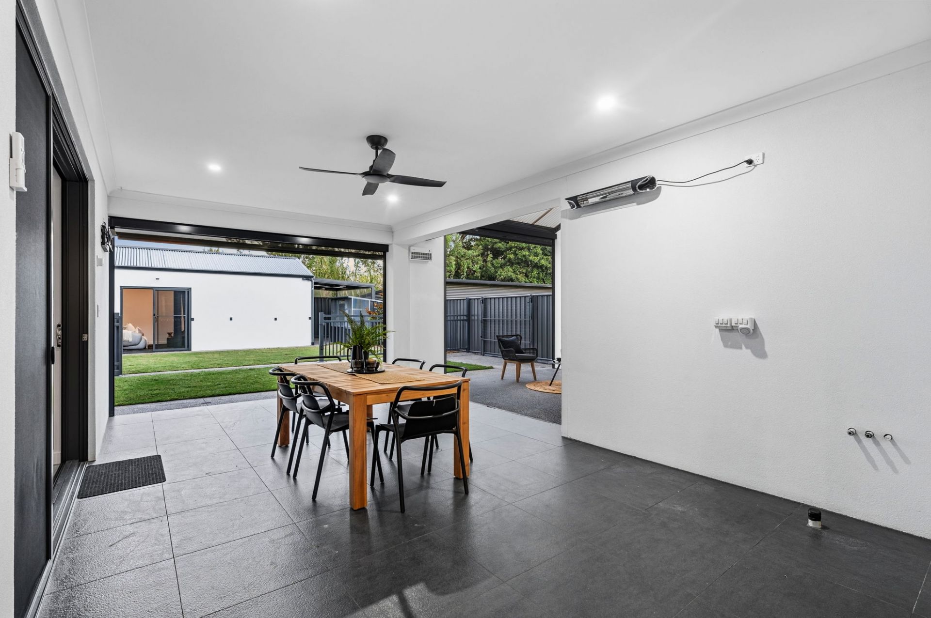 • Entertainer's alfresco with shade blinds, outdoor heater, insect zapper and ceiling fans