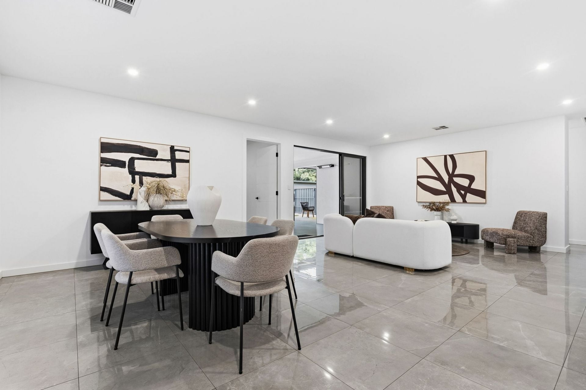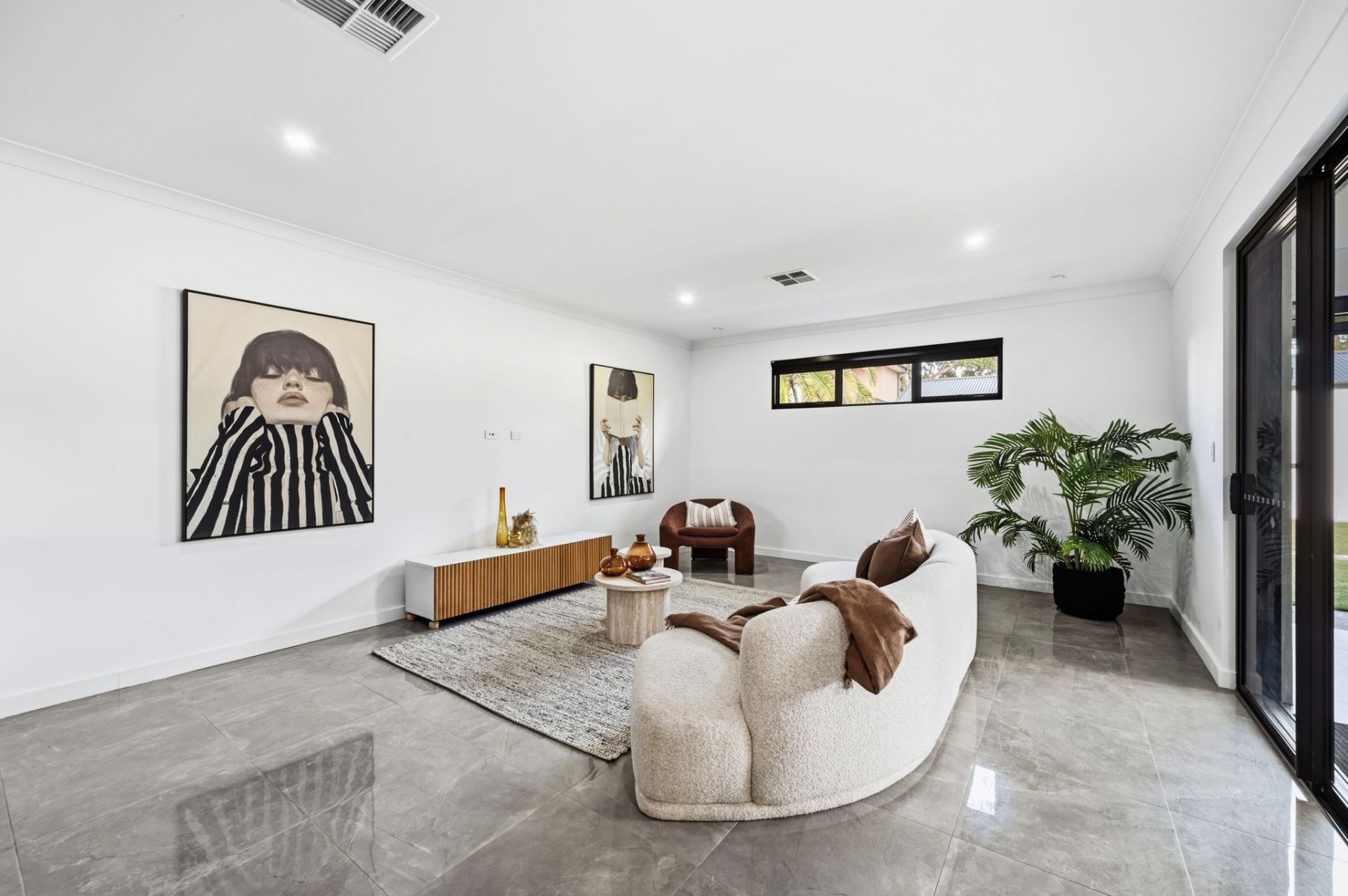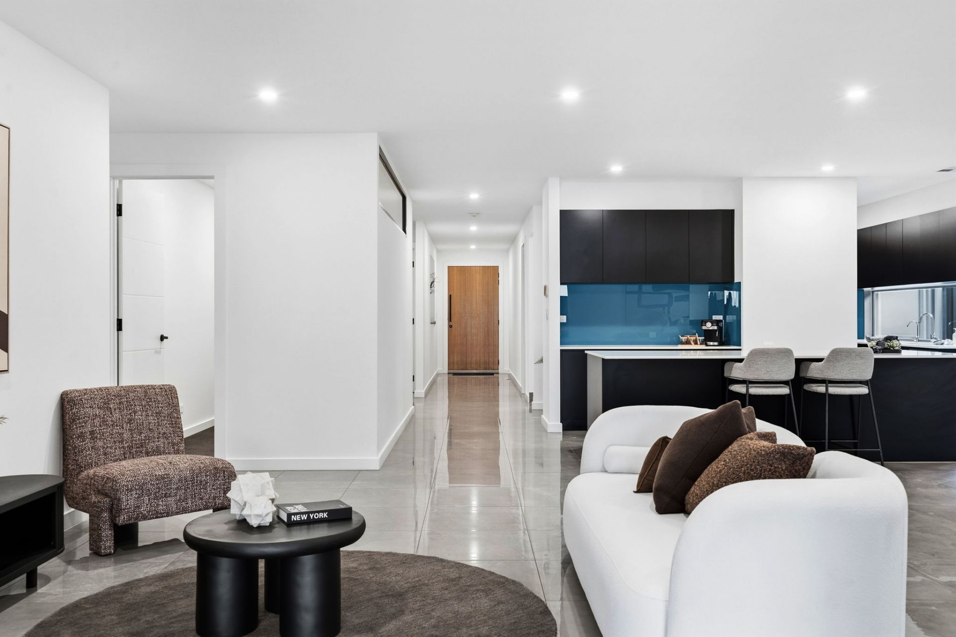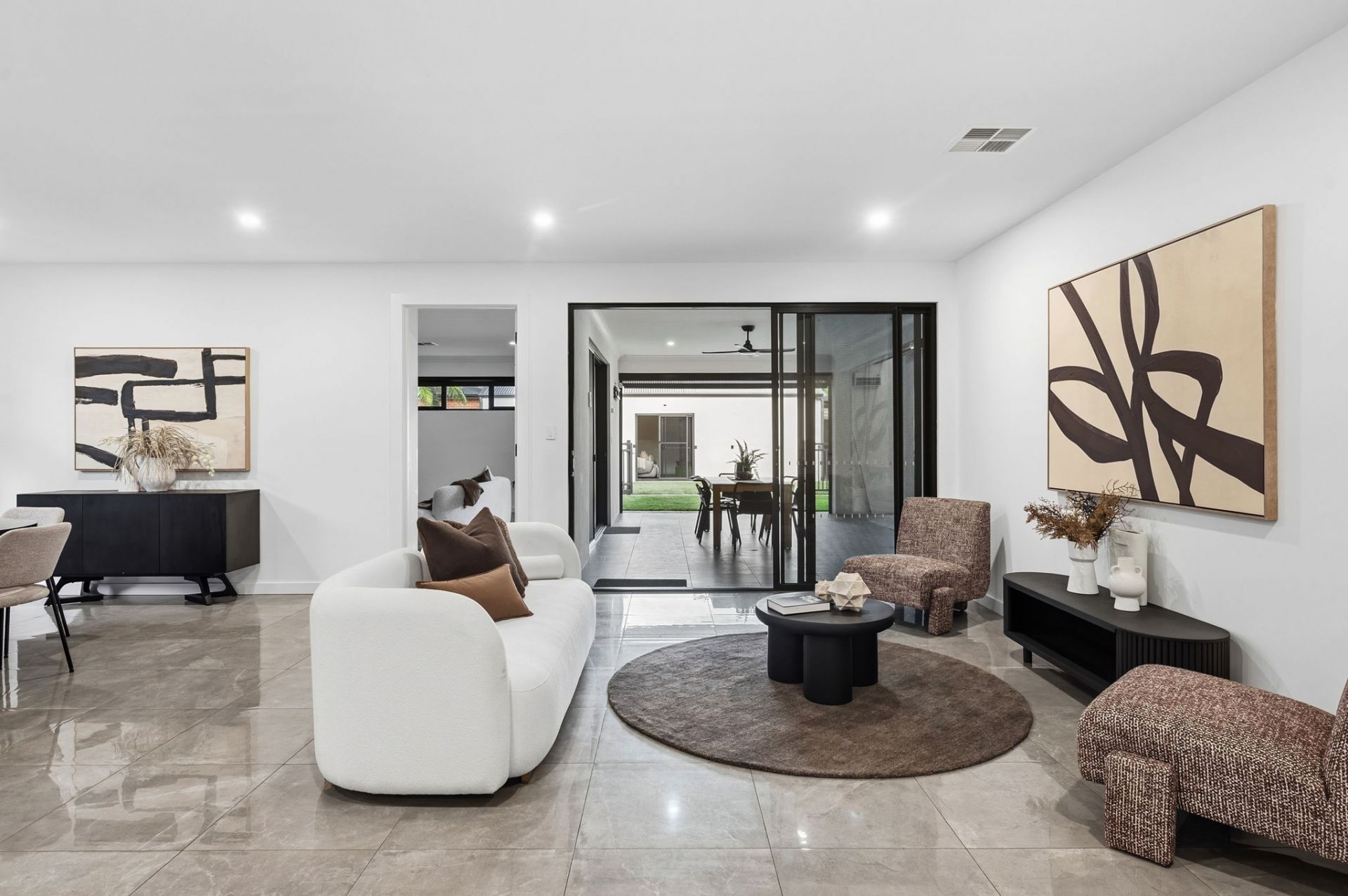 And how house proud you will be, with a frontage and contemporary fencing that welcome you home in security in style. Stepping indoors, gleaming porcelain tiles guide you to the open plan living, the natural heart of family time.
