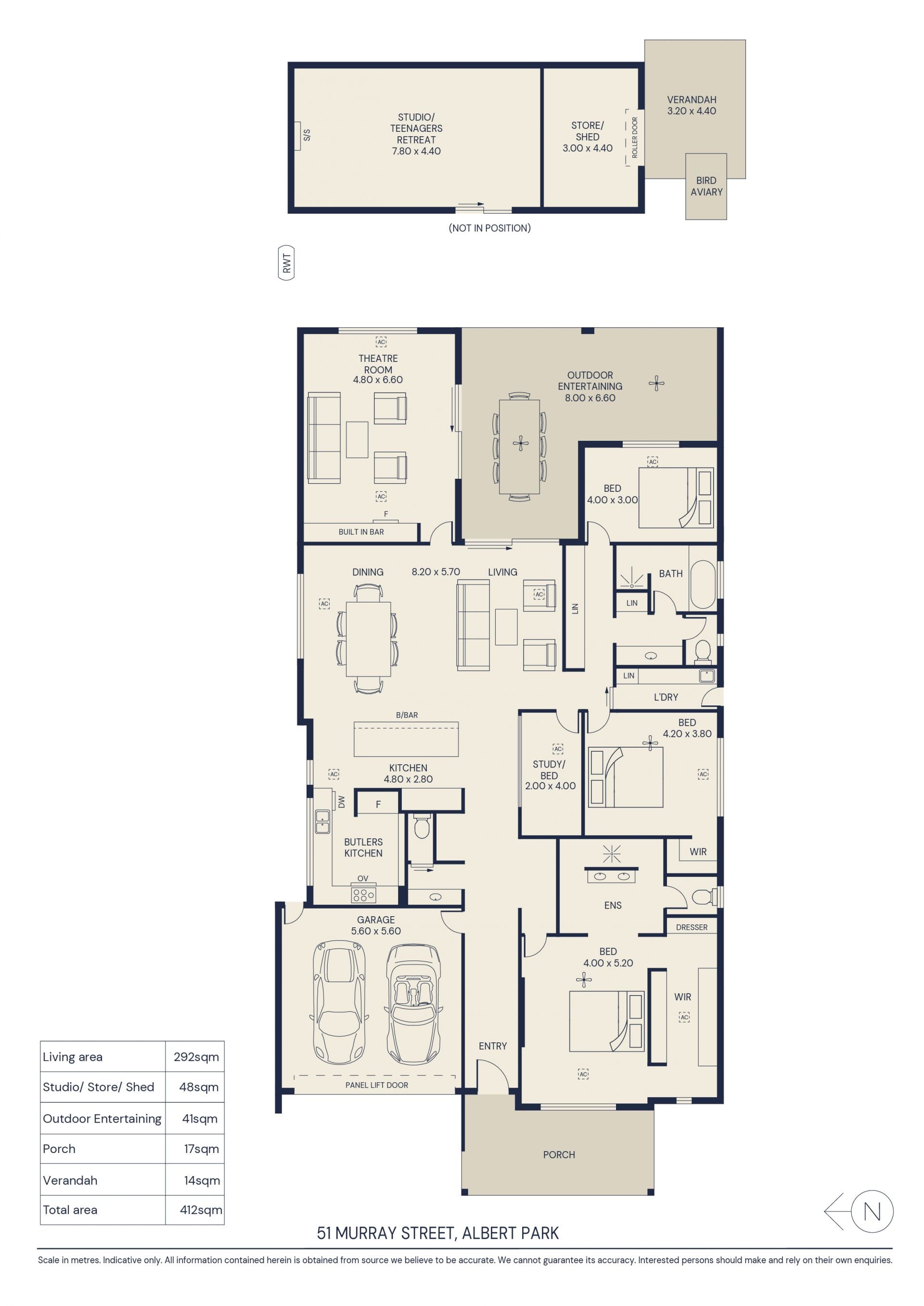 • Rear studio or teenagers retreat with split system AC ideal as additional living area/home office