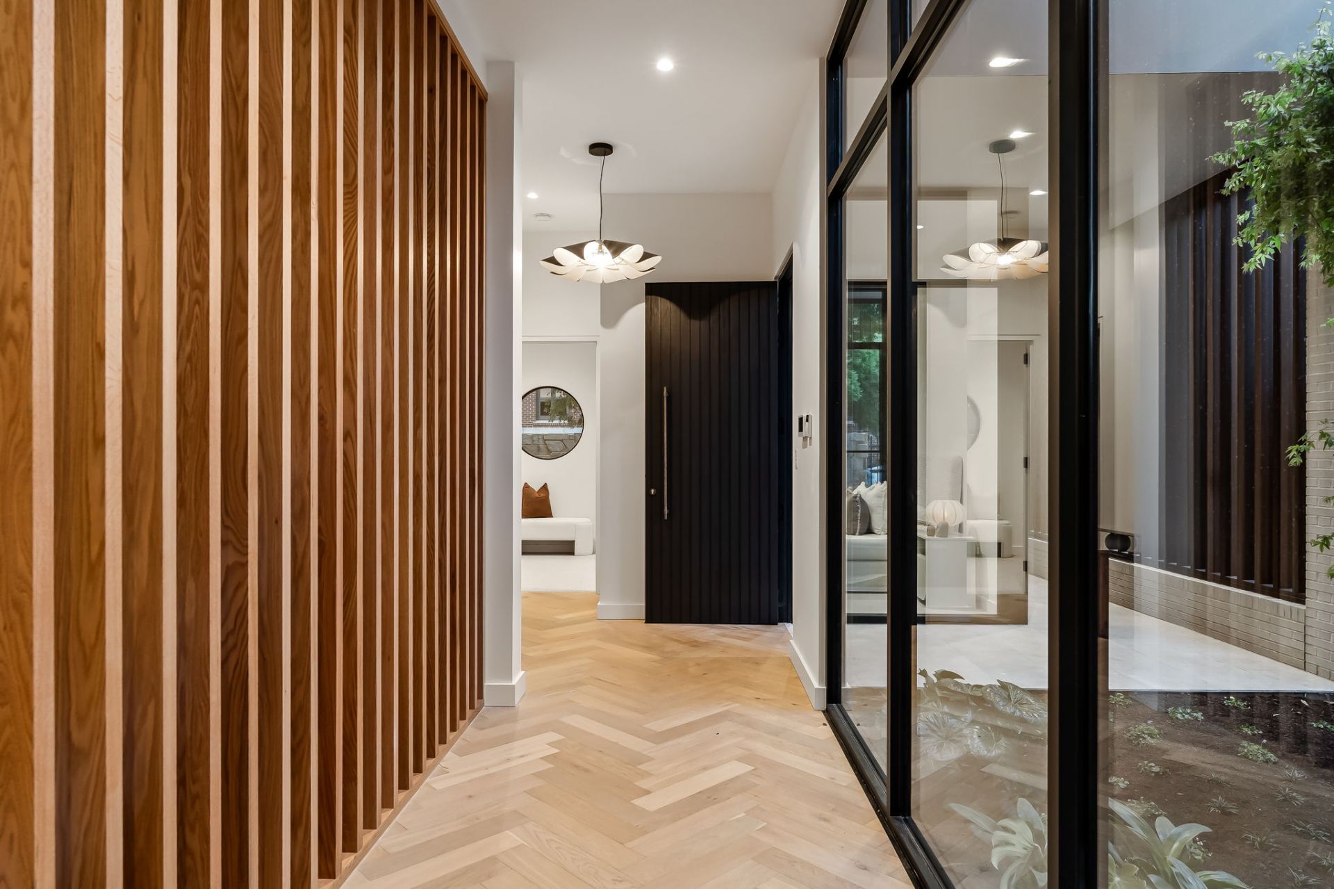 • Oak herringbone floors to living zones