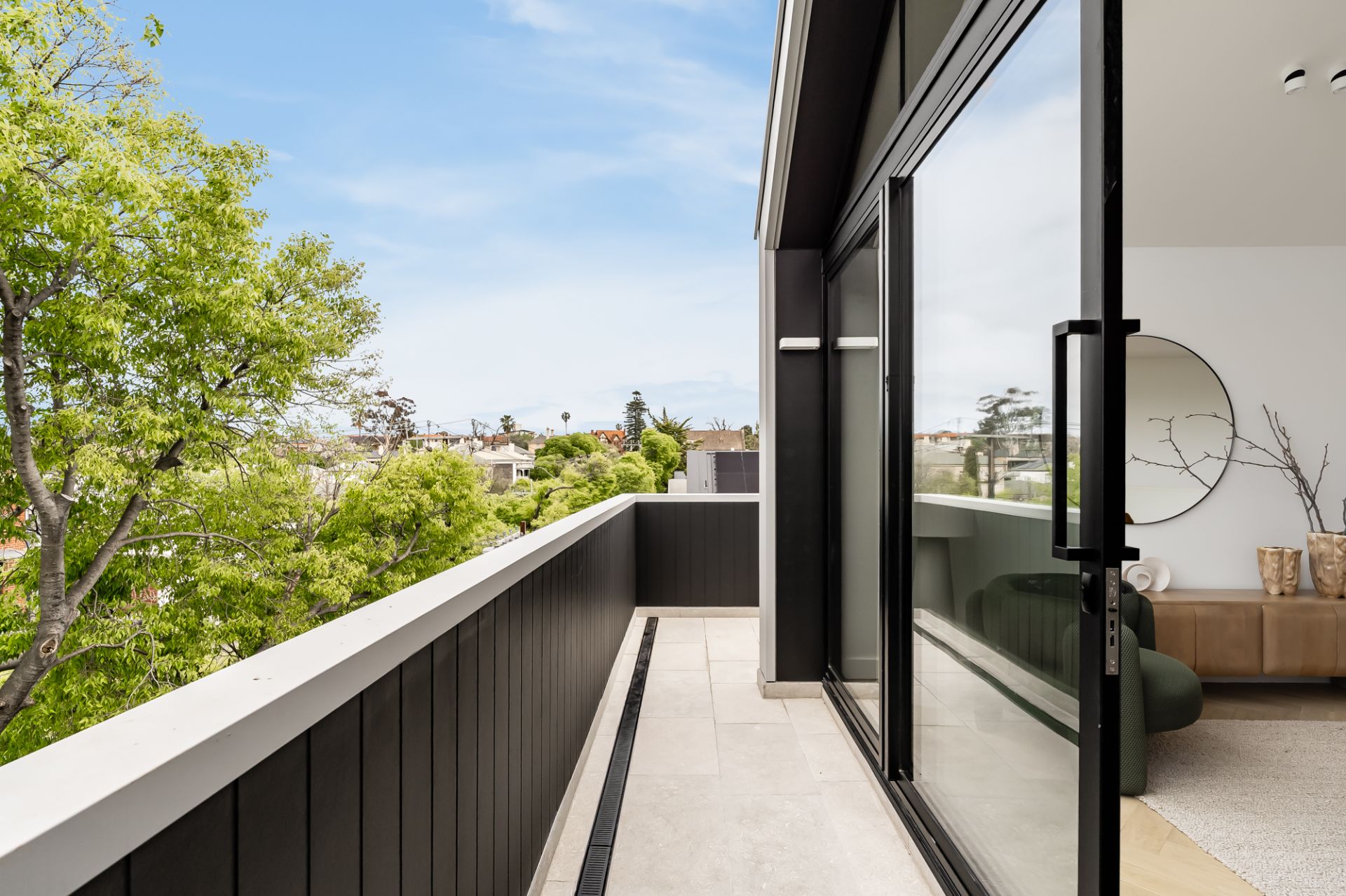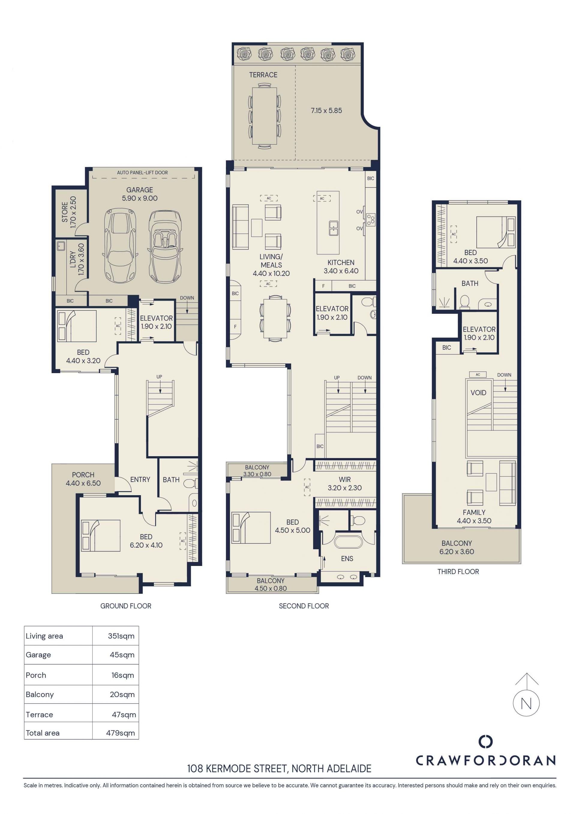 • Second floor: open-plan living, dining and kitchen flowing to northern terrace