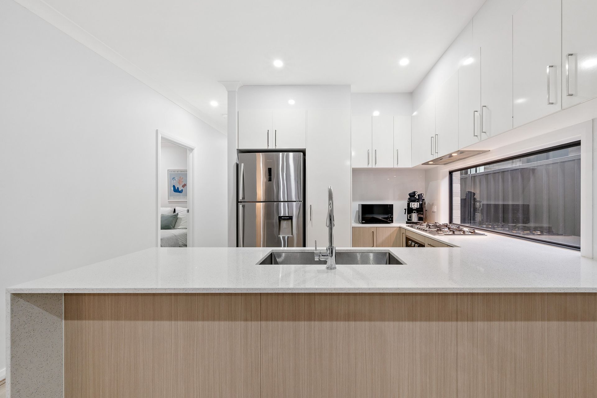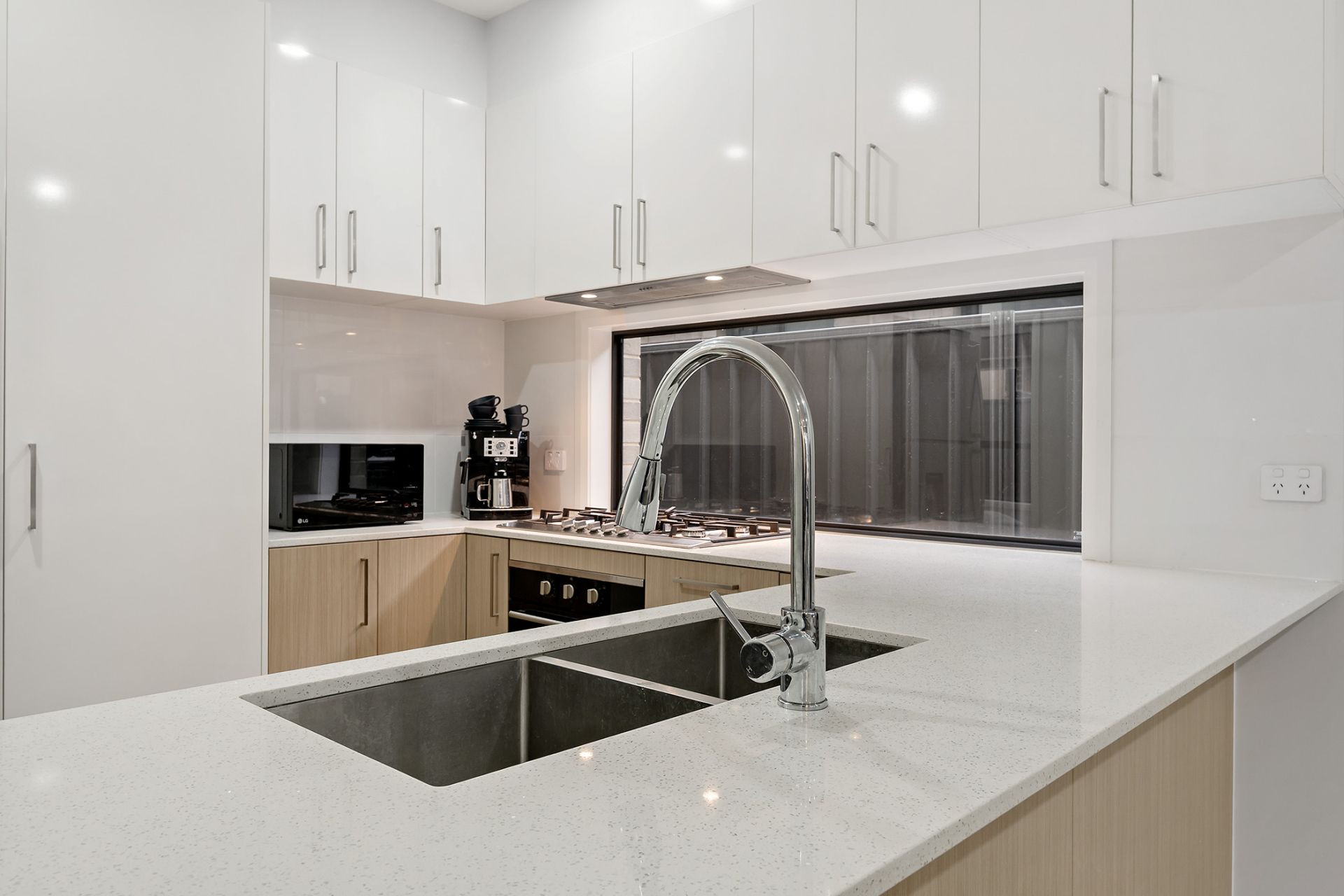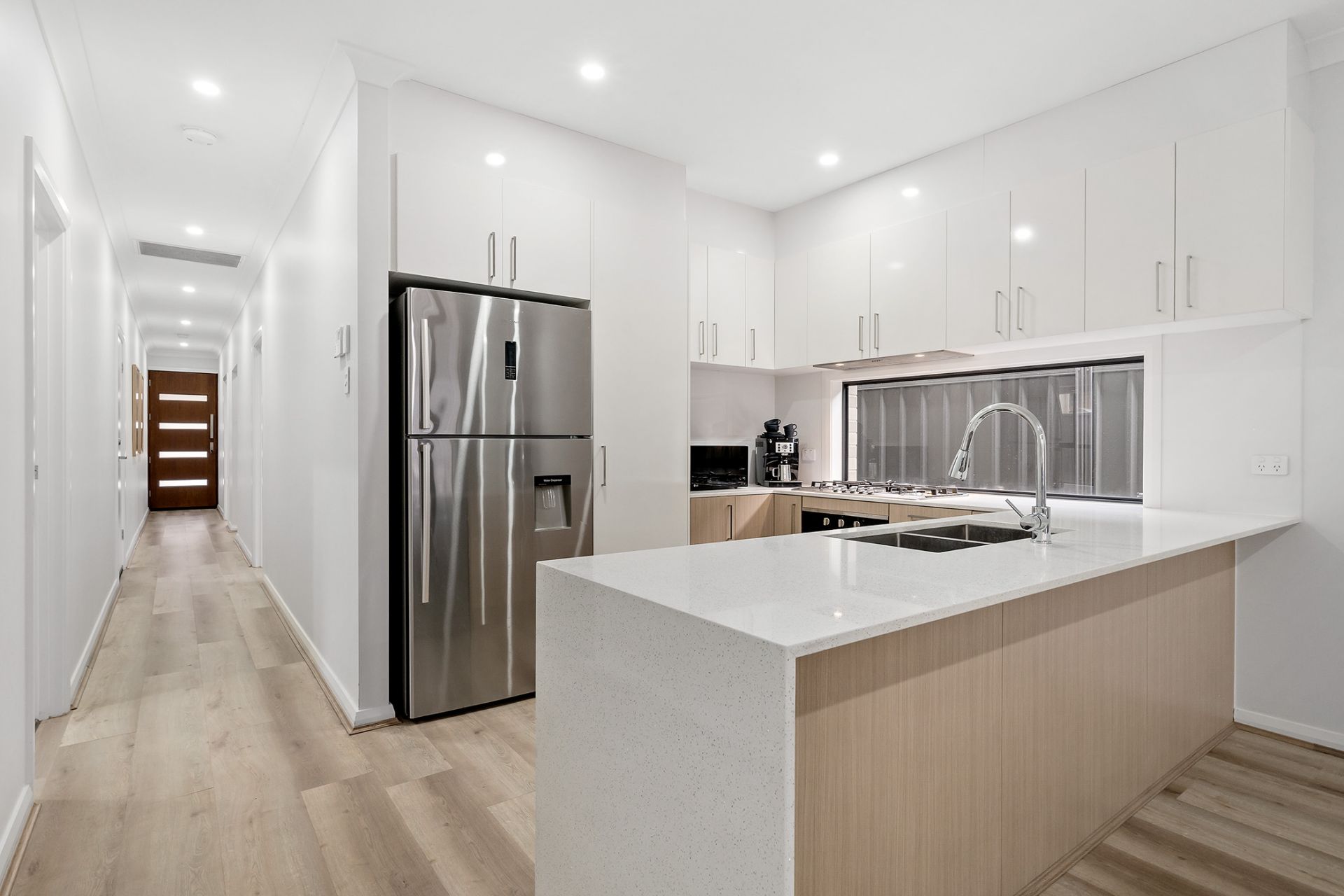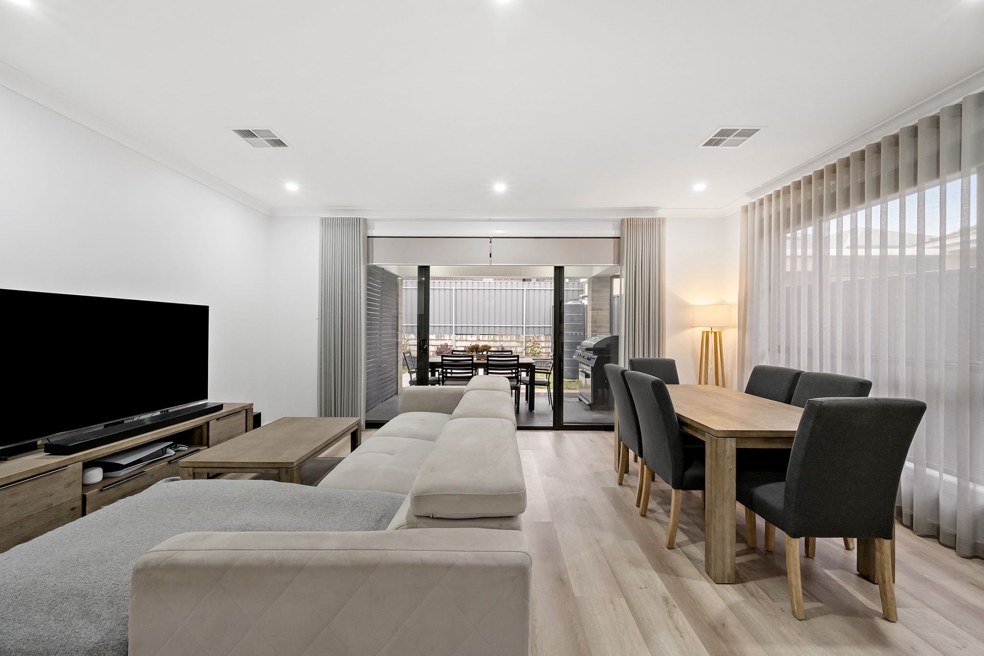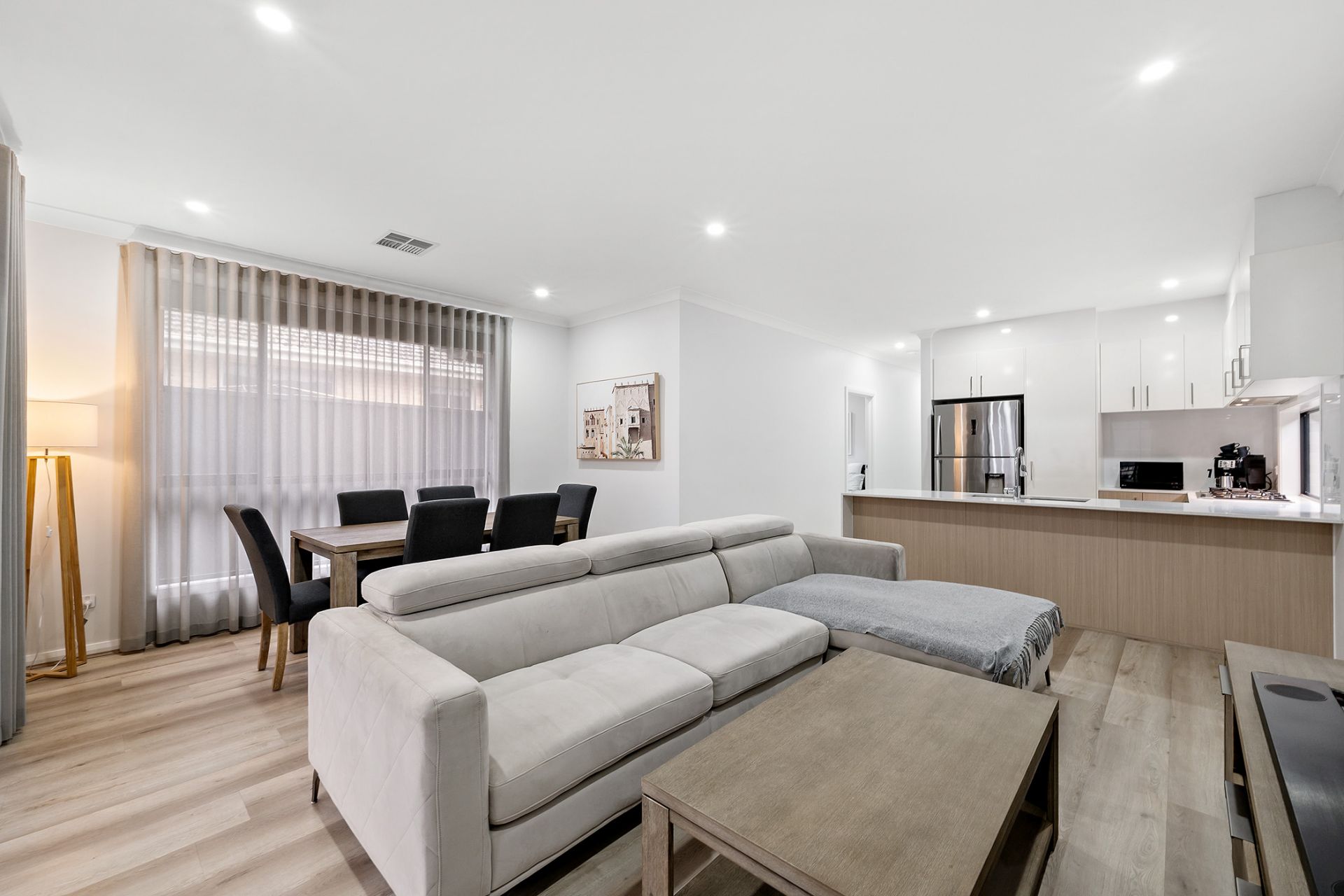 • Stylish timber-look floors and sheer curtains