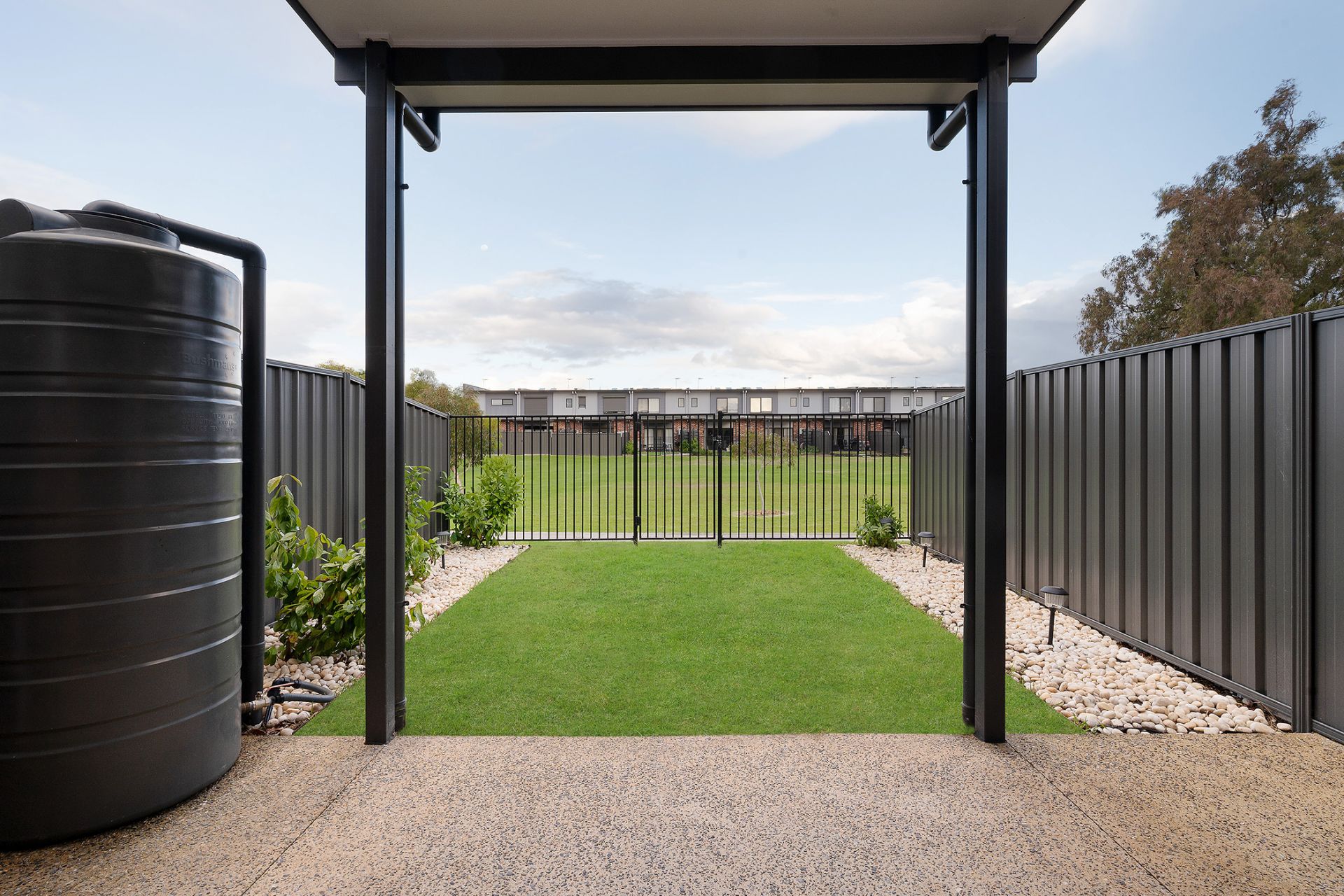 • Rainwater tank and easy-care rear lawn with gated access to reserve