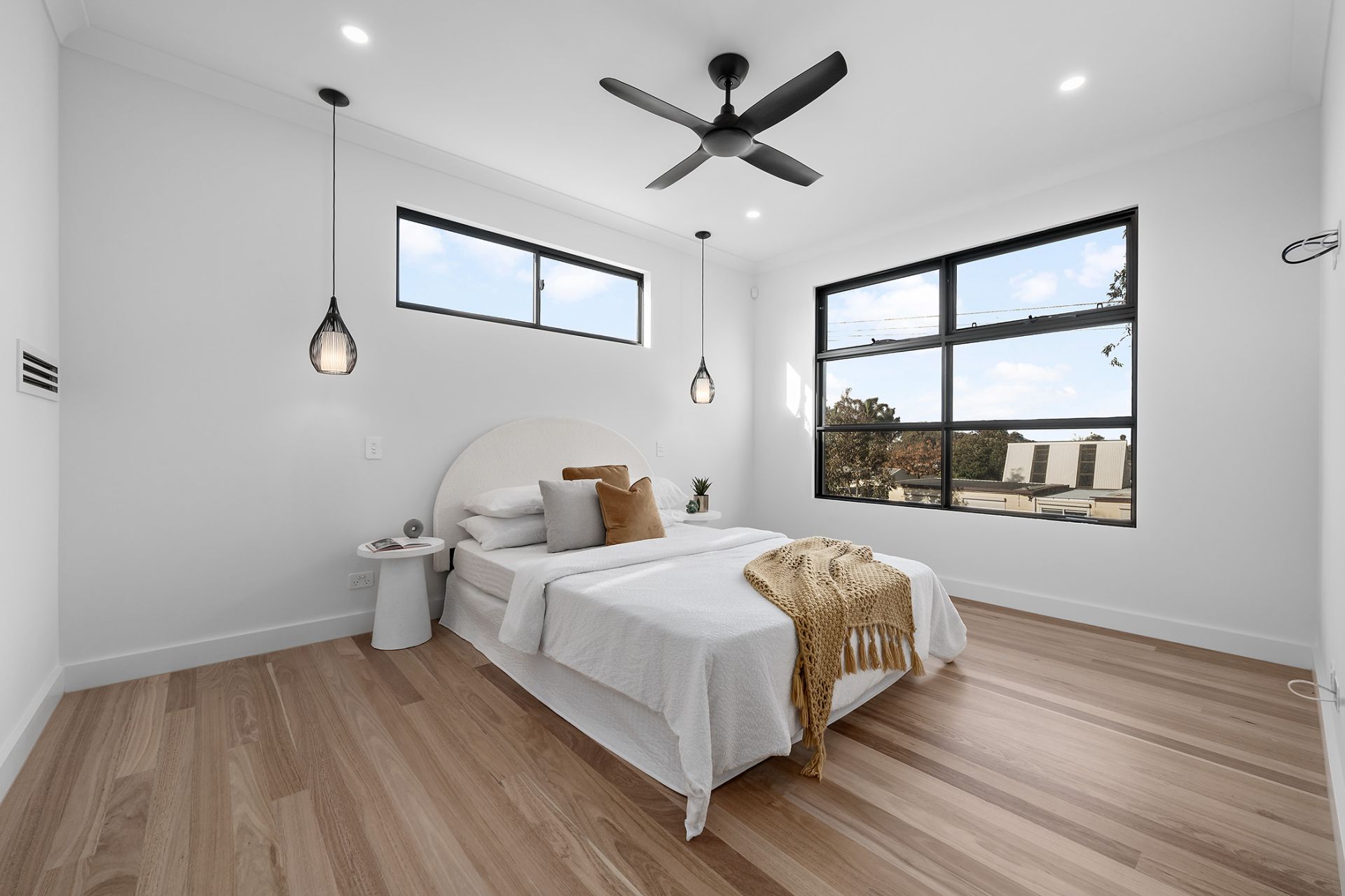 Every wet area here is slick and fully tiled - including two ensuite bathrooms on an upper level that lives by the motto 'why have one master bedroom when you can have two'.