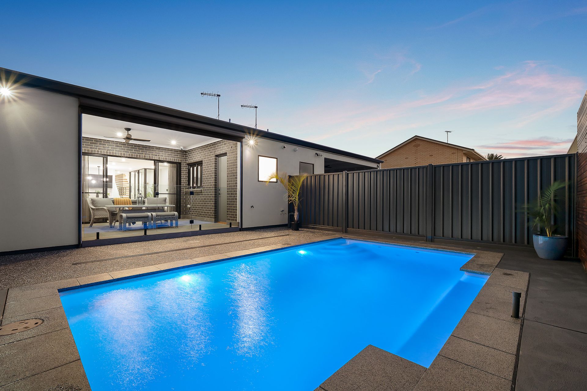 • Private swimming pool framed by landscaped, low-maintenance surrounds