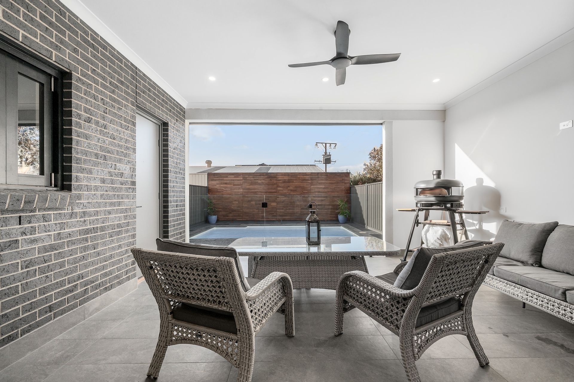 • Covered alfresco pavilion with downlights, ceiling fan and tiled flooring